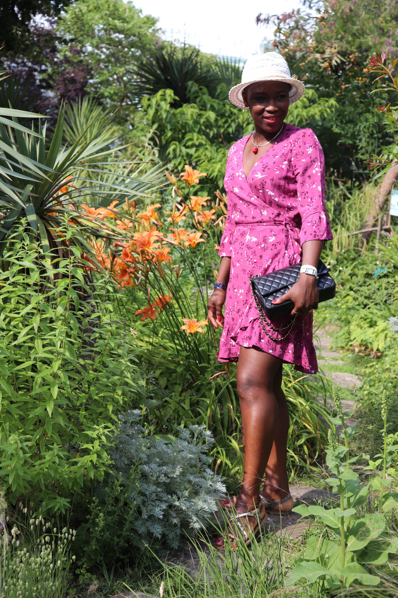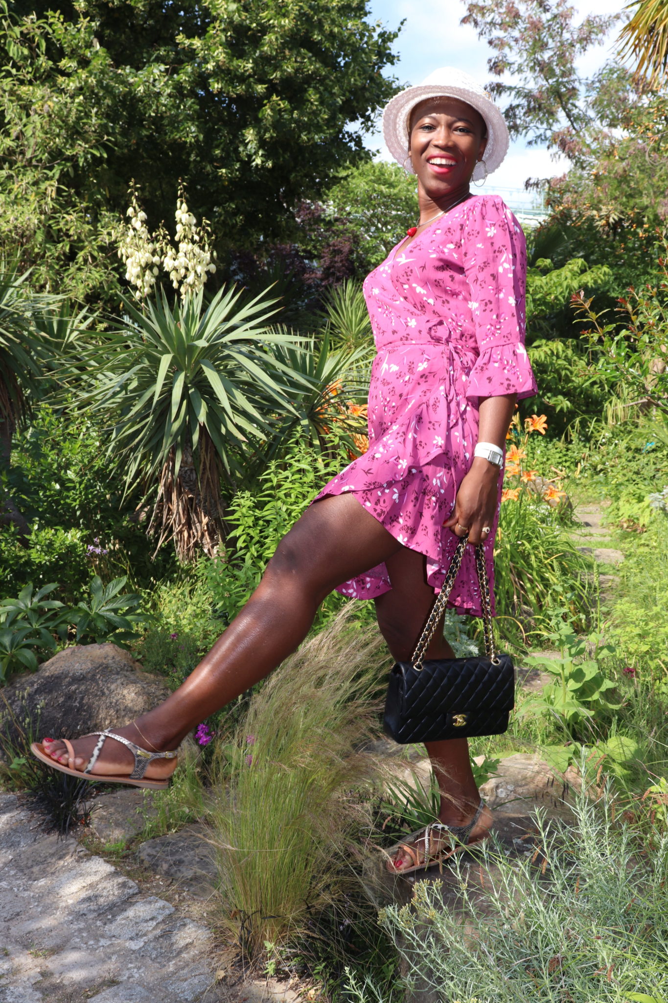 - Robe rose fleurie GAP, Sandales les tropéziennes, bracelet bangle- up Paris, sac chanel Timeless, chapeau Balaboosté Paris.